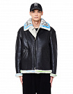 Дубленка Balenciaga сделана из черной текстурированной кожи. Внутренняя отделка и воротник из белой овчины, расписанной вручную надписями в стиле граффити. Стандартный прямой крой, застежка на молнию, по бокам прорезные карманы. Также в магазине SV77 представлены мужские дубленки и куртки из актуальных коллекций других брендов.