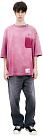 Футболка-A15TS621 фейк карман на груди,дырявый,лого на груди,выстиранный бордовый